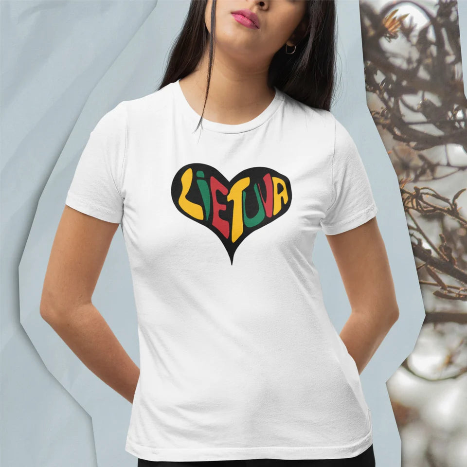 Balti UNISEX marškinėliai "Lietuvos širdis" (M dydis) Pagaminta prekė