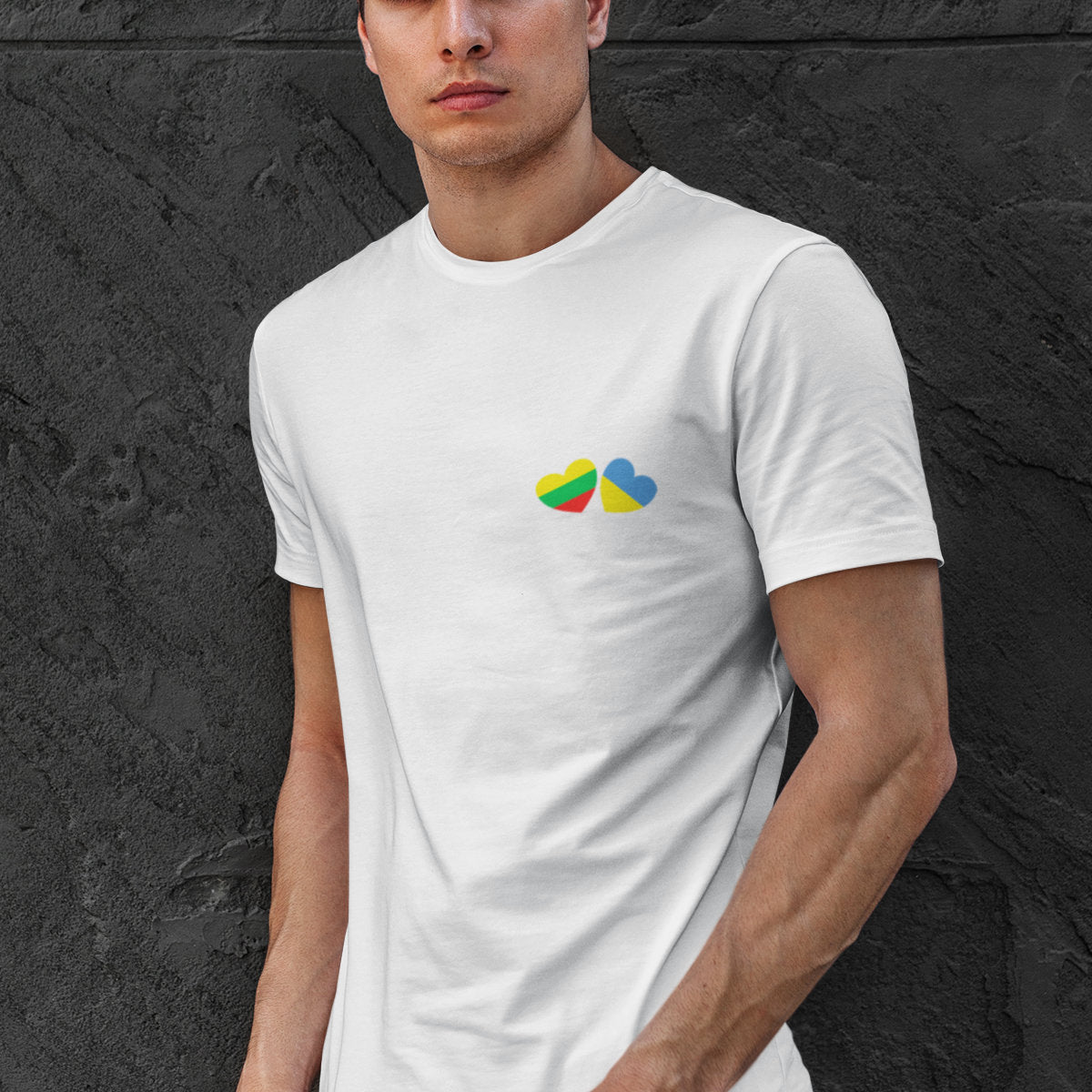 Balti UNISEX marškinėliai "LT ir UA širdutės“