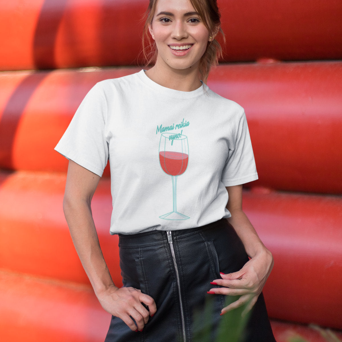 Balti UNISEX marškinėliai "Mamai reikia vyno“