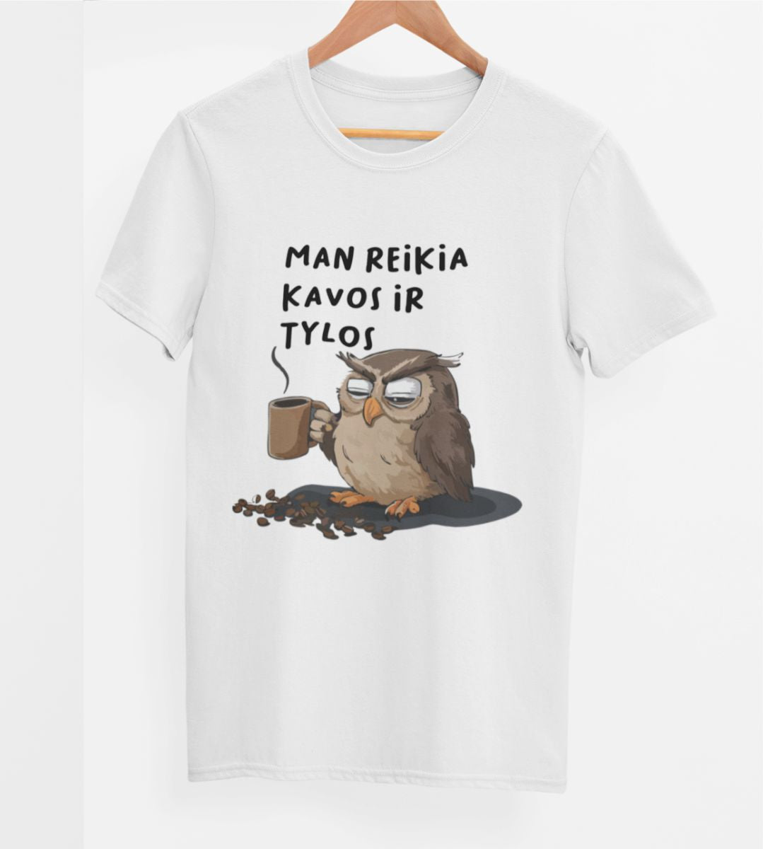 Balti UNISEX marškinėliai "Man reikia kavos ir tylos"