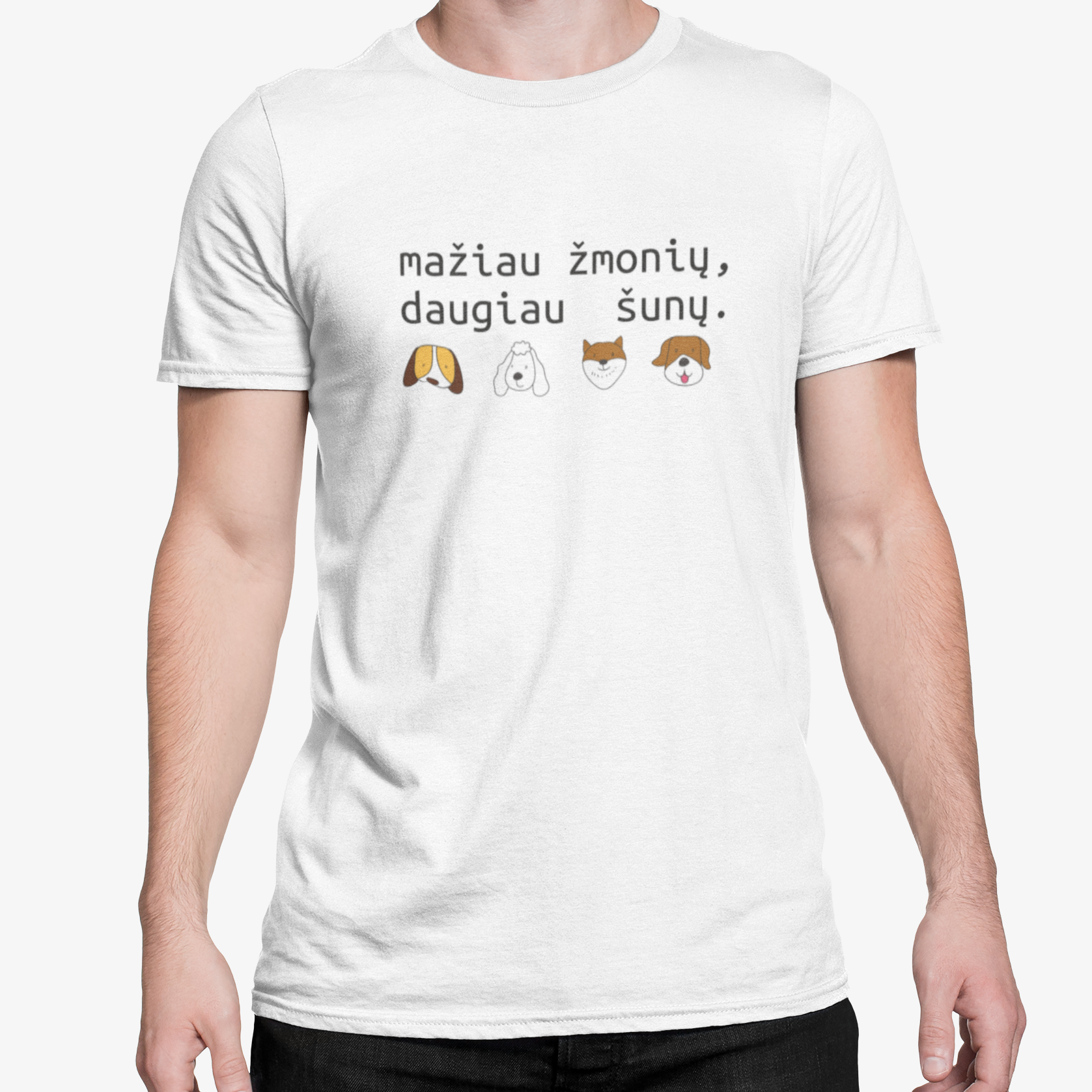 Balti UNISEX marškinėliai "Mažiau žmonių, daugiau šunų"