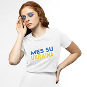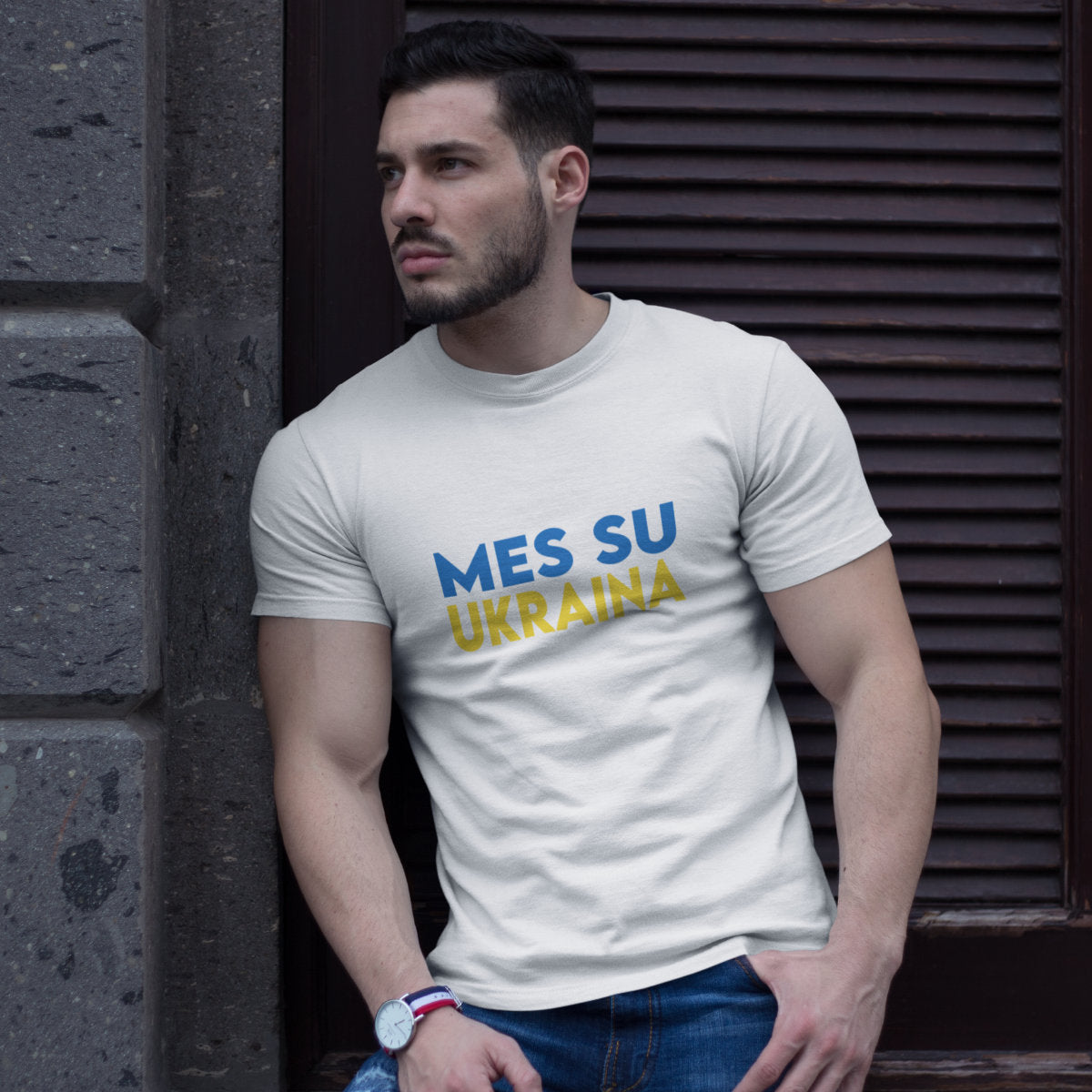 Balti UNISEX marškinėliai "Mes su Ukraina“