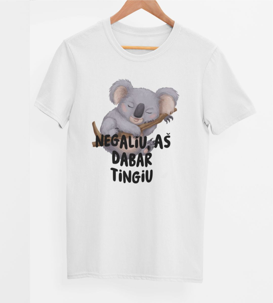 Balti UNISEX marškinėliai "Negaliu, aš dabar tingiu"