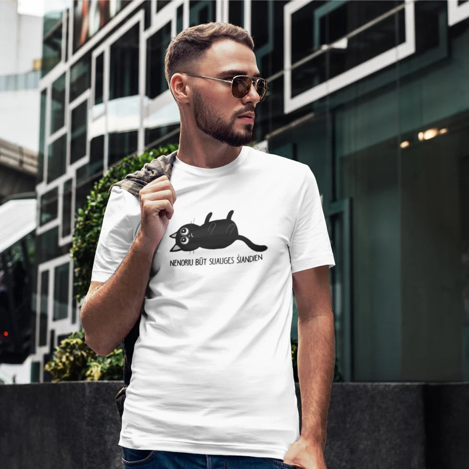 Balti UNISEX marškinėliai "Nenoriu būt suaugęs šiandien“ (L dydis). Pagaminta prekė. Greitas išsiuntimas!