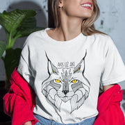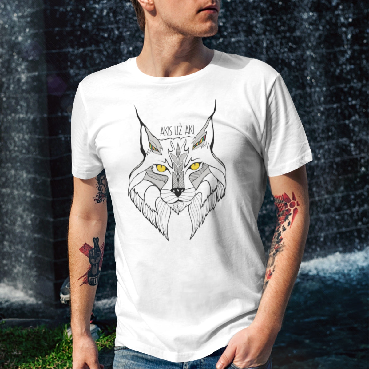 Balti UNISEX marškinėliai "Nespalvota lūšis"