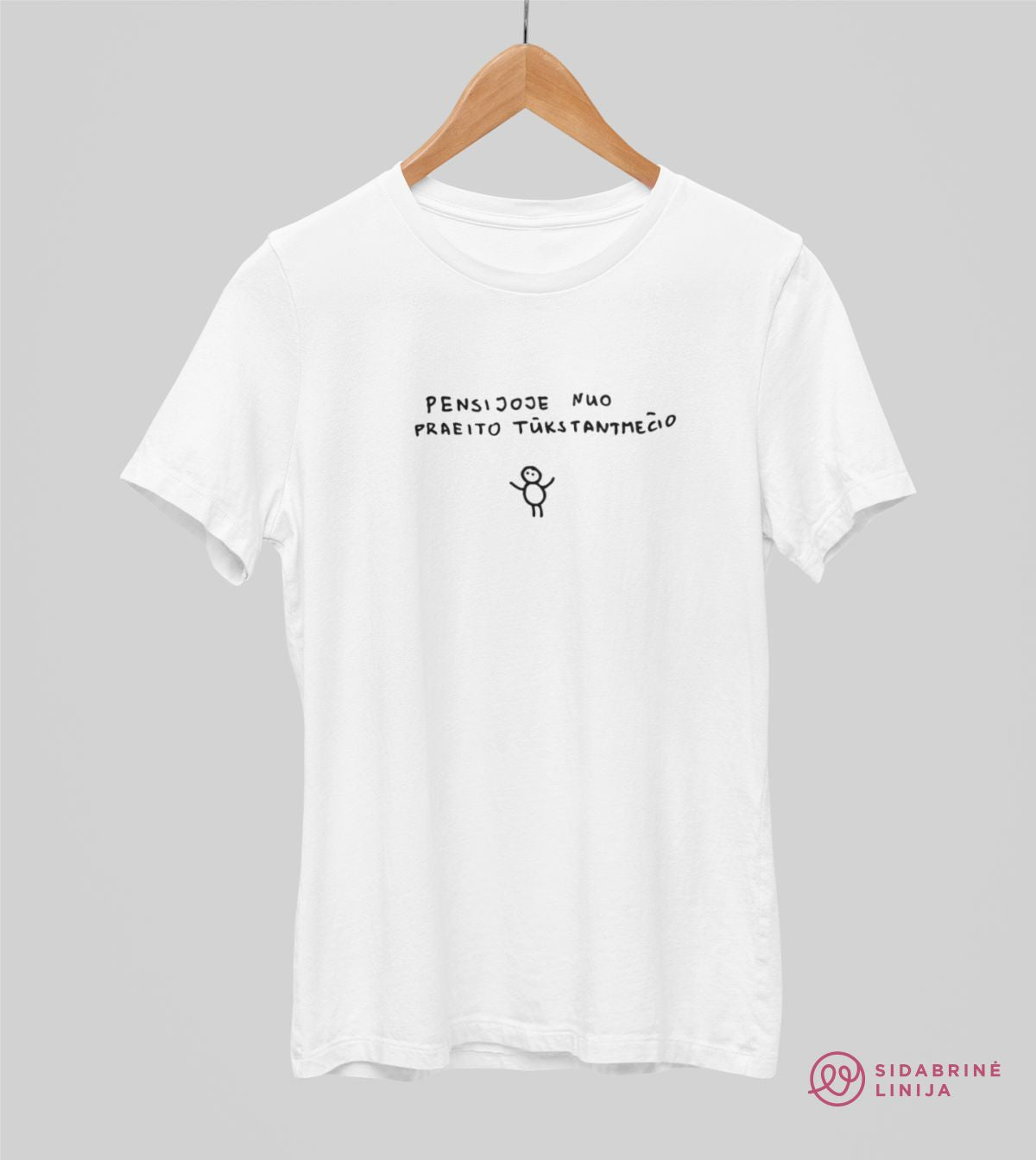 Balti UNISEX marškinėliai "Pensijoje nuo praeito tūkstantmečio"