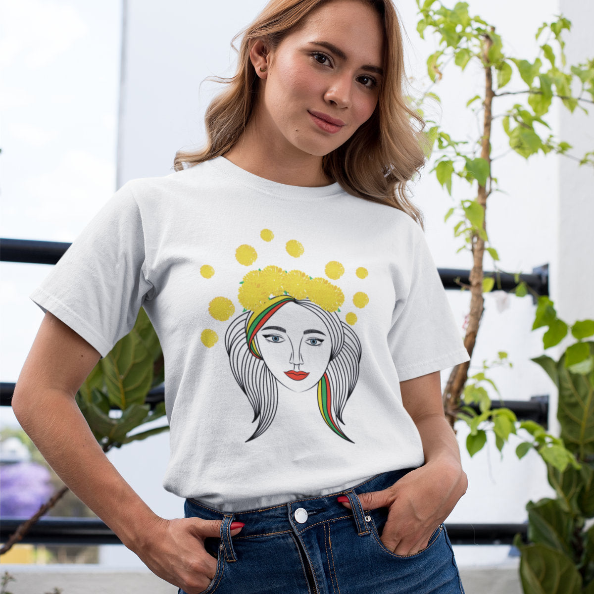 Balti UNISEX marškinėliai "Pievų mergaitė“