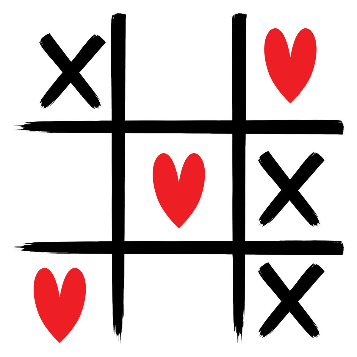 Balti unisex marškinėliai poroms „Širdutės ir iksai“