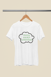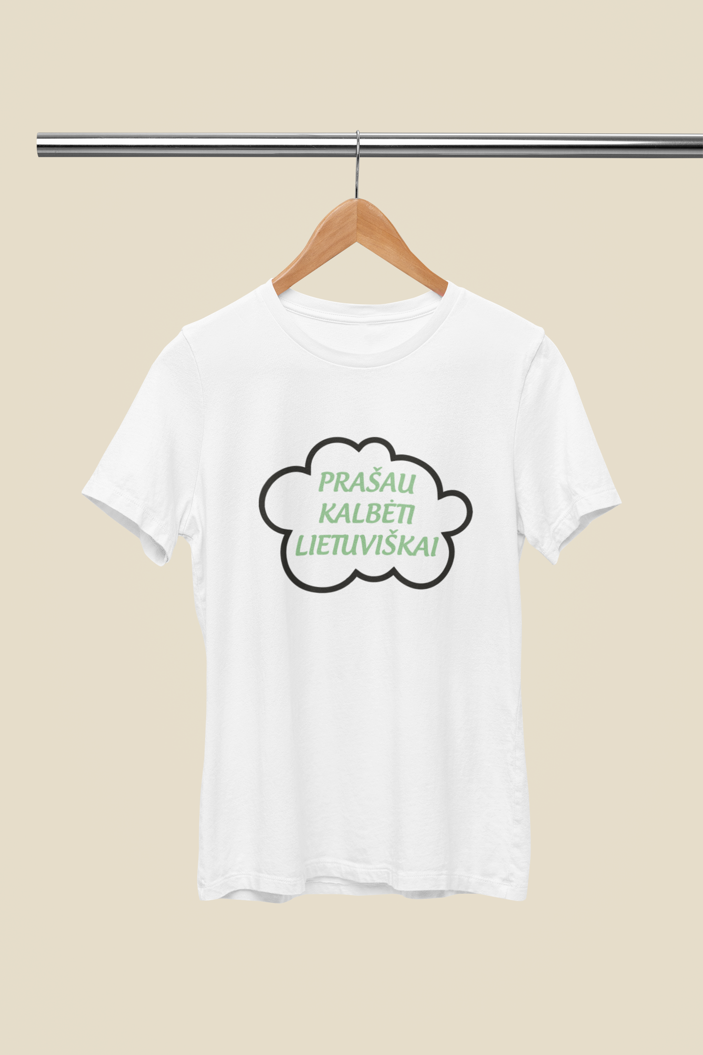 Balti UNISEX marškinėliai "Prašau kalbėti lietuviškai"
