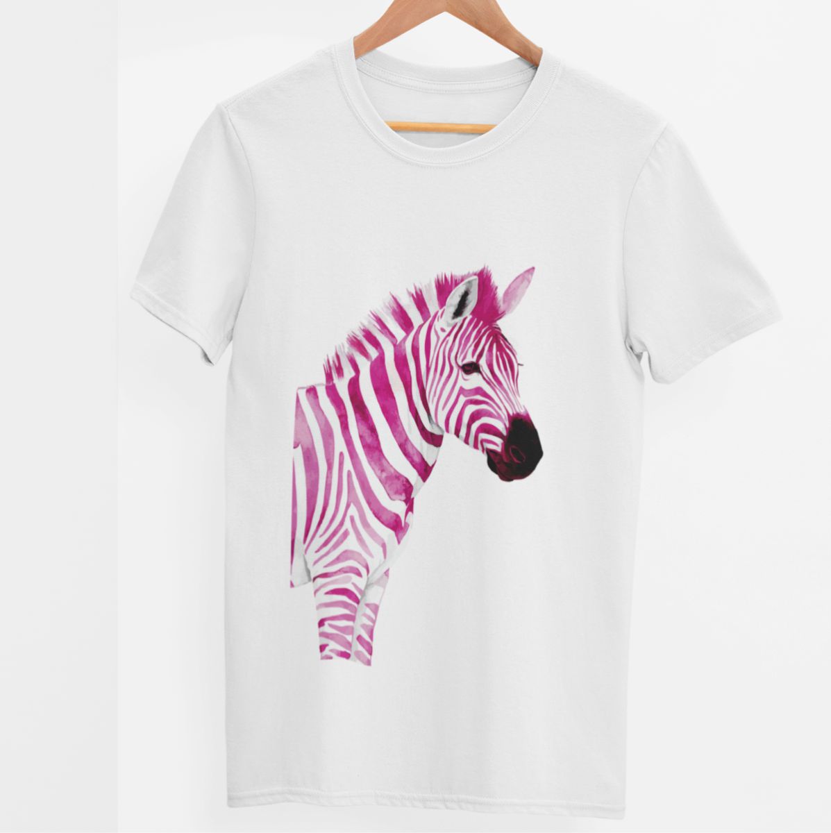Balti UNISEX marškinėliai "Rožinis zebras"