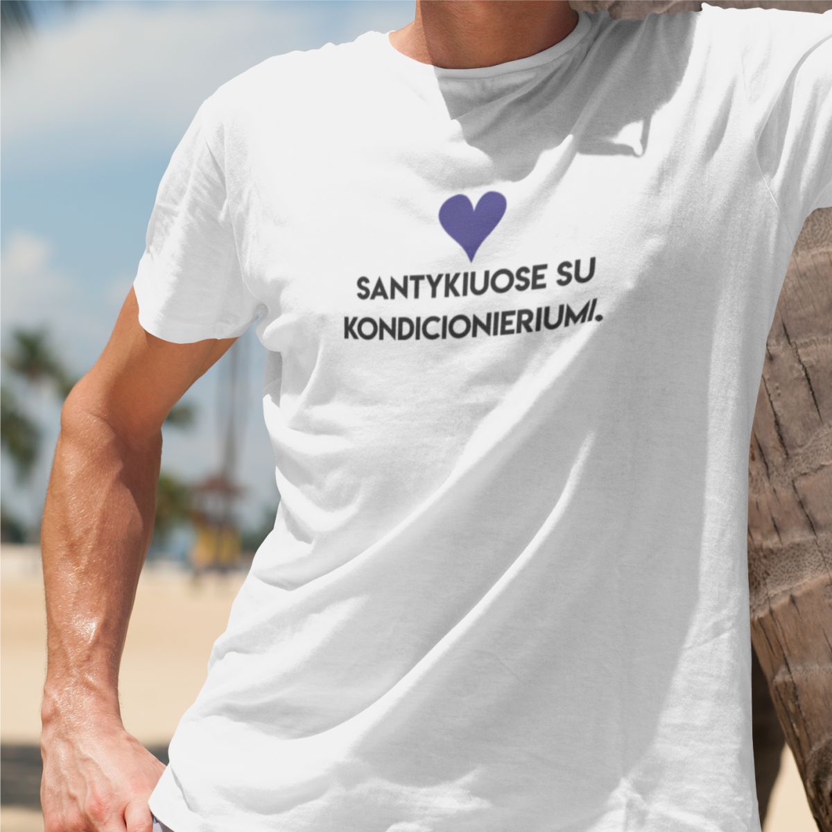 Balti UNISEX marškinėliai "Santykiuose su kondicionieriumi“