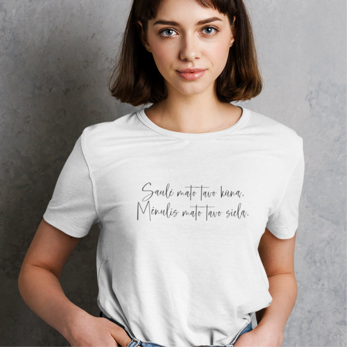 Balti UNISEX marškinėliai "Saulė mato tavo kūną"