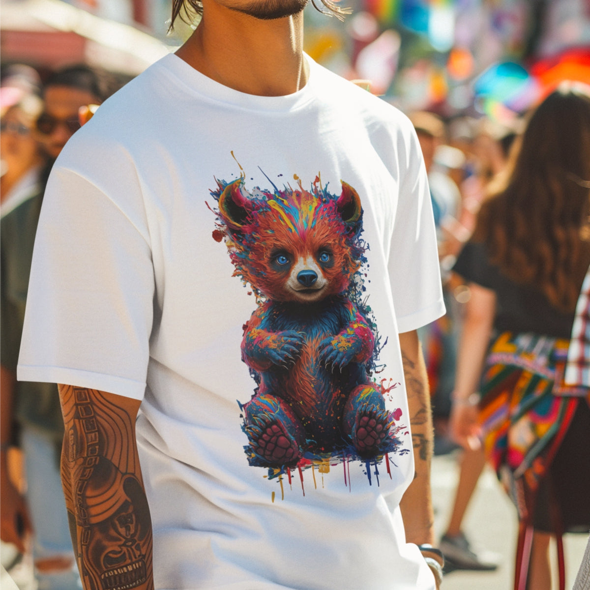Balti UNISEX marškinėliai "Spalvotas meškinas"