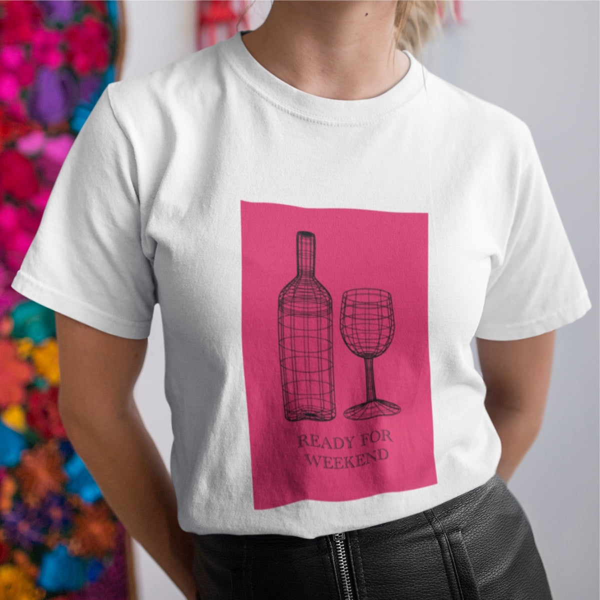 Balti UNISEX marškinėliai su iliustracija "Ready for weekend"