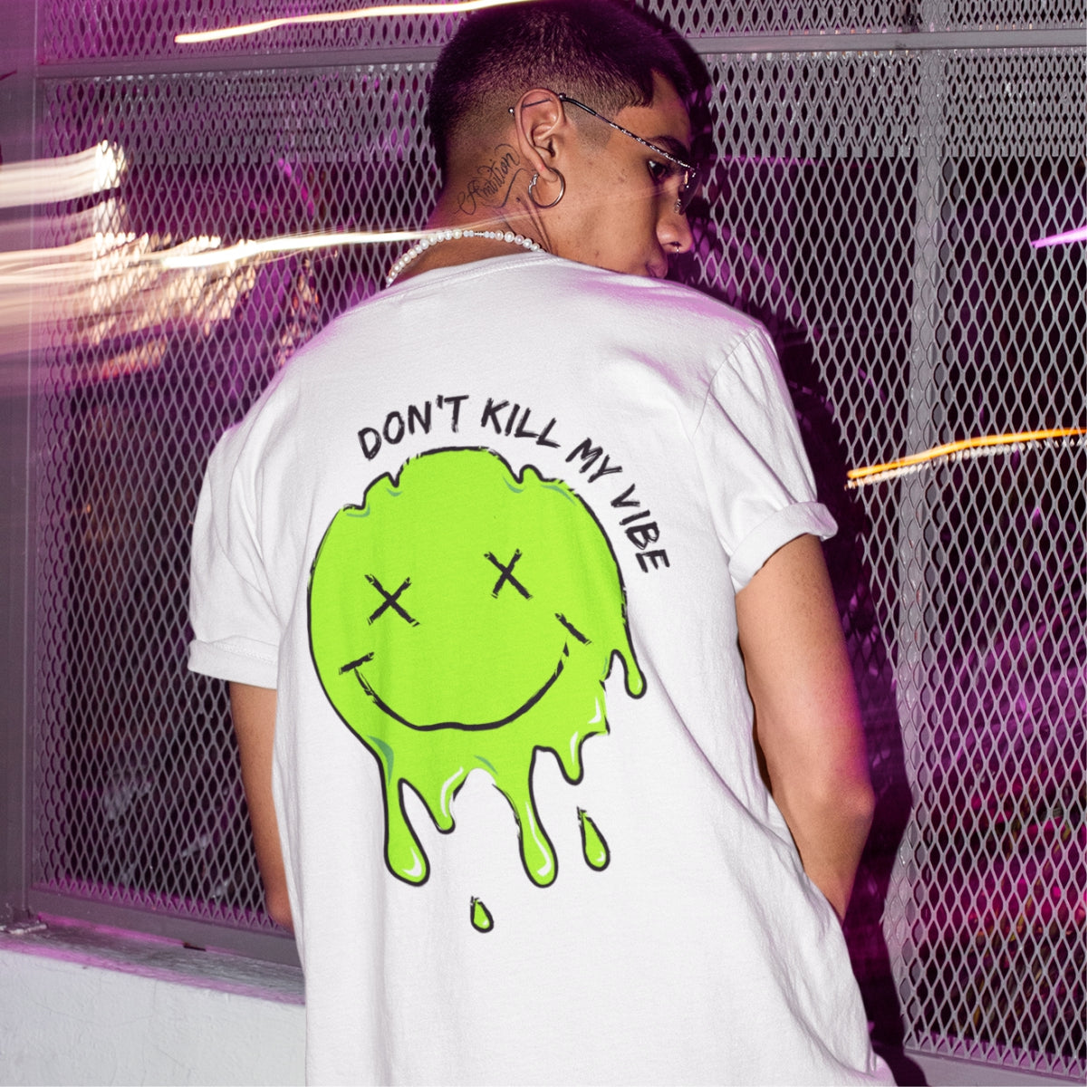Balti UNISEX marškinėliai su spauda ant nugaros "Don't kill my vibe“