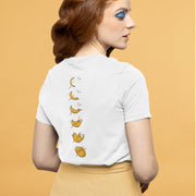 Balti UNISEX marškinėliai su spauda ant nugaros "Katinuko fazės“
