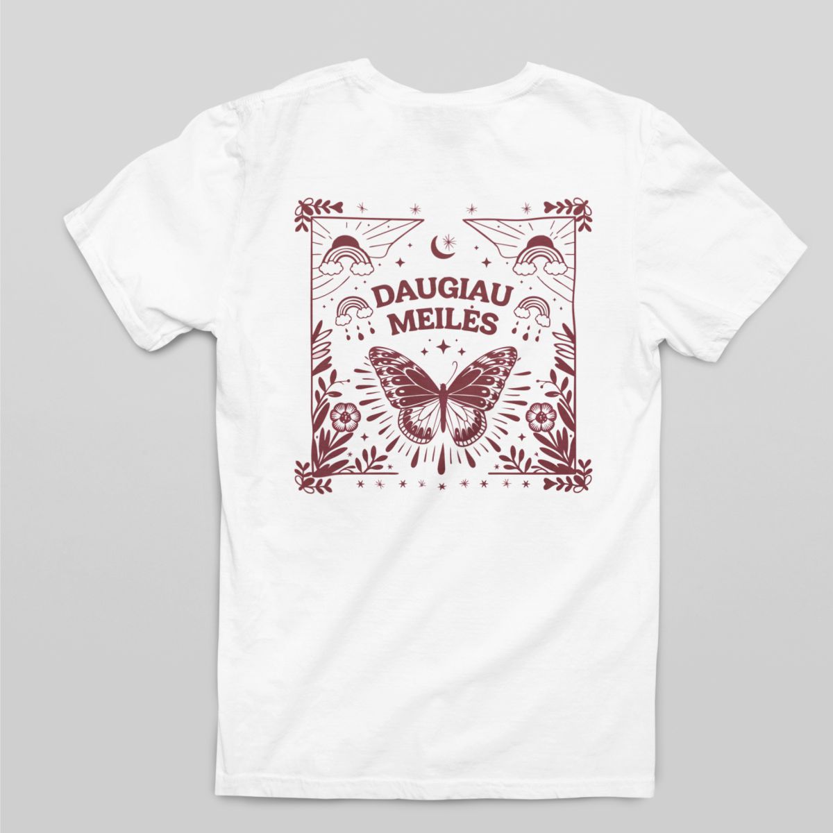Balti UNISEX marškinėliai su spauda ant nugaros "Daugiau meilės visiems"