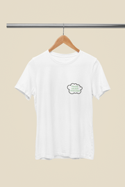 Balti UNISEX marškinėliai su spauda širdies plote "Prašau kalbėti lietuviškai"