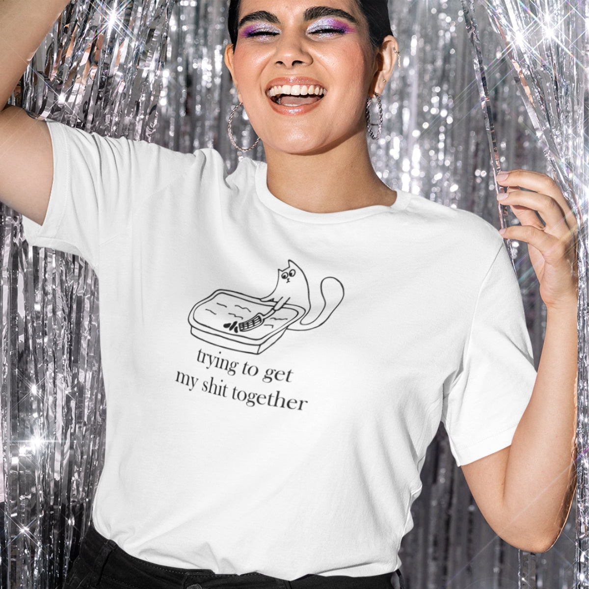 Balti UNISEX marškinėliai "Trying to get my shit together"