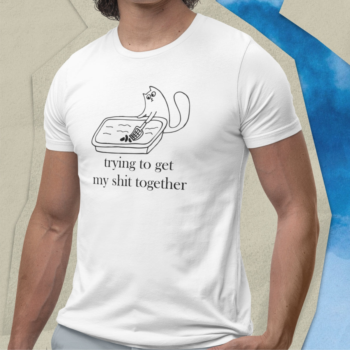Balti UNISEX marškinėliai "Trying to get my shit together"