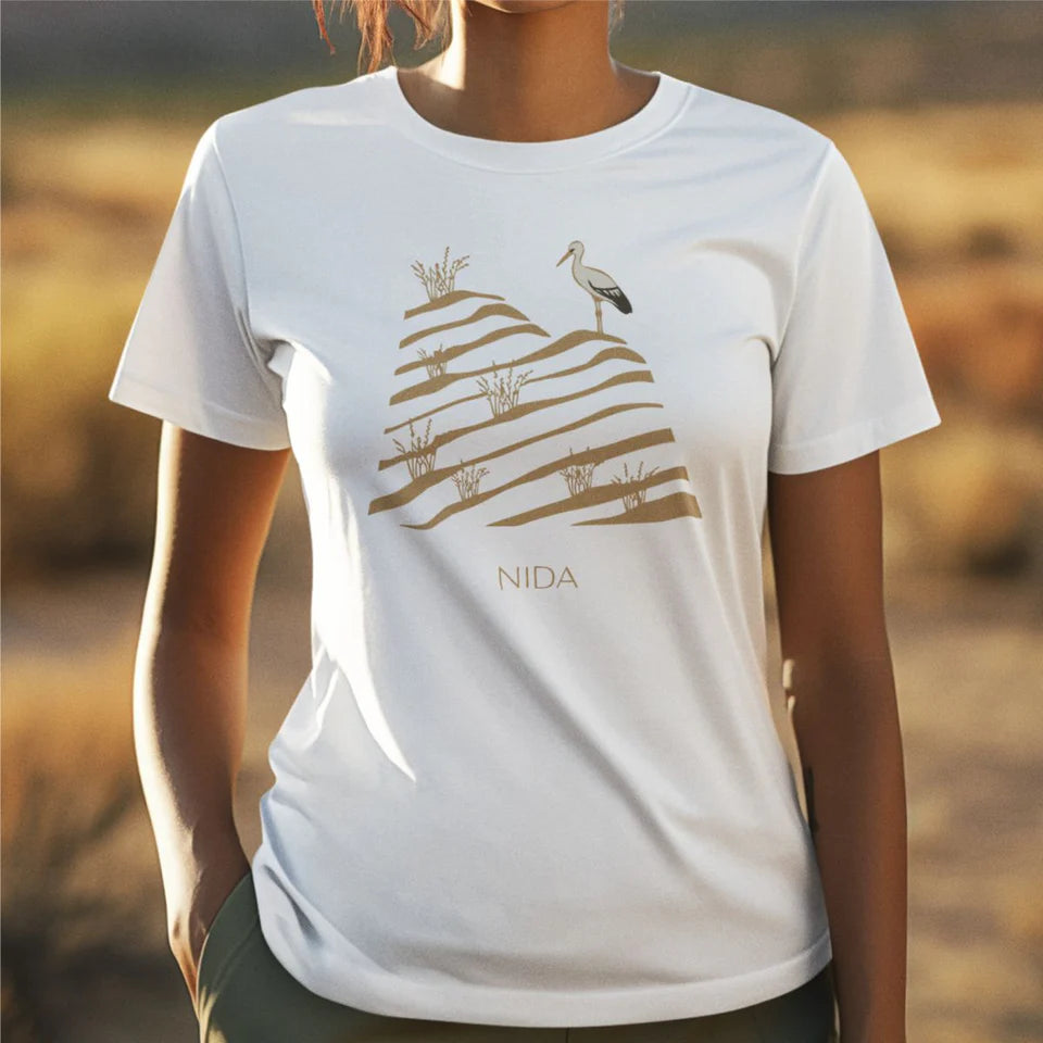 Balti UNISEX Premium marškinėliai "Nidos kopos" (L dydis) Pagaminta prekė