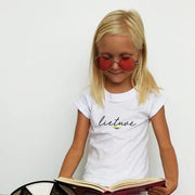 Balti vaikiški marškinėliai "Lietuvė" (4 metų vaikui). Pagaminta prekė. Greitas išsiuntimas!