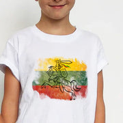 Balti vaikiški marškinėliai "Trispalvė su Vyčiu" (8 metų vaikui). Pagaminta prekė. Greitas išsiuntimas!