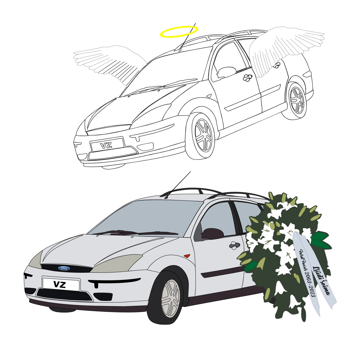 Balti Oversize Unisex VITA ŽIBA marškinėliai "A.A. Ford Focus"