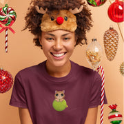 Burgundiški UNISEX kalėdiniai marškinėliai "Katinukas ant žaisliuko"