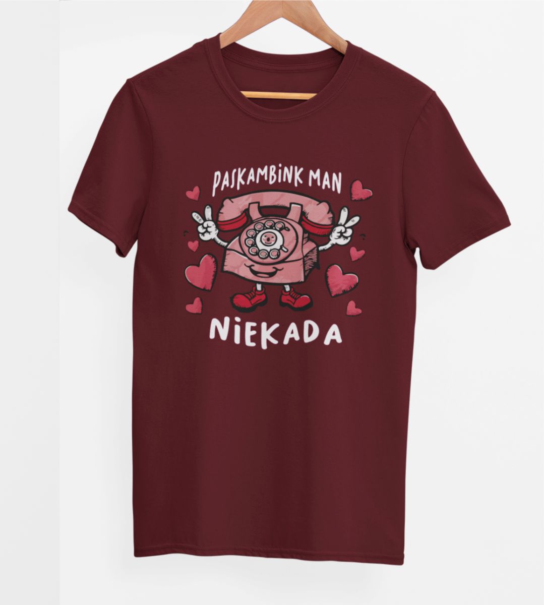 Burgundiški UNISEX marškinėliai "Paskambink man niekada"