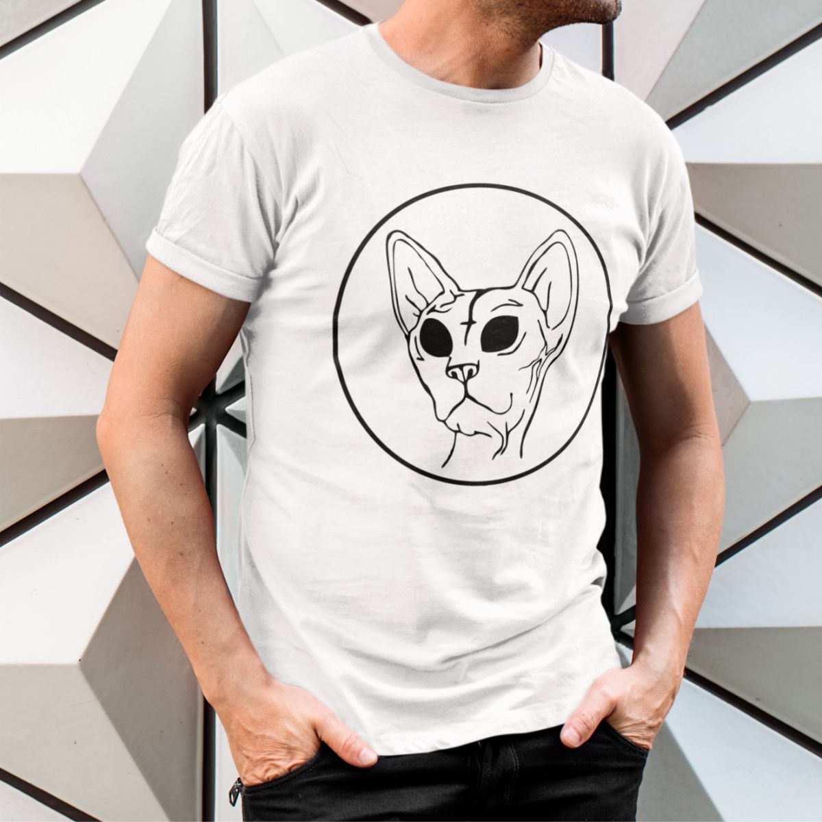 Balti UNISEX marškinėliai "Sfinksas skritulyje"