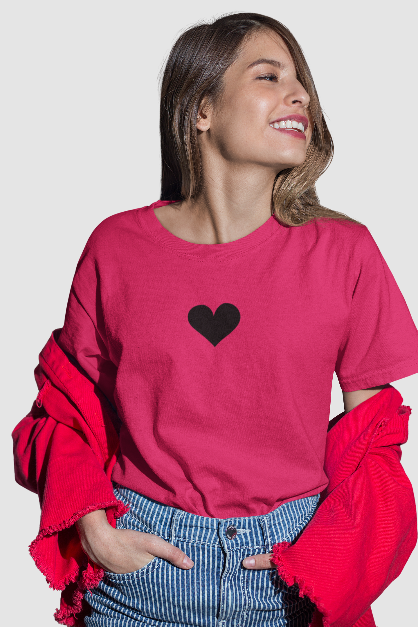 Fuksijų rožiniai Oversize Unisex marškinėliai "Juoda širdukė“