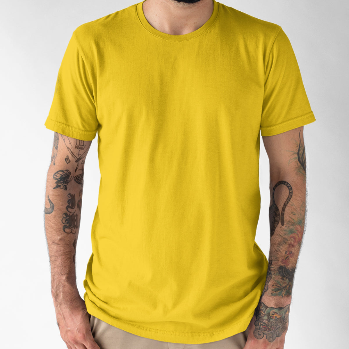 Geltoni UNISEX medvilniniai marškinėliai be spaudos