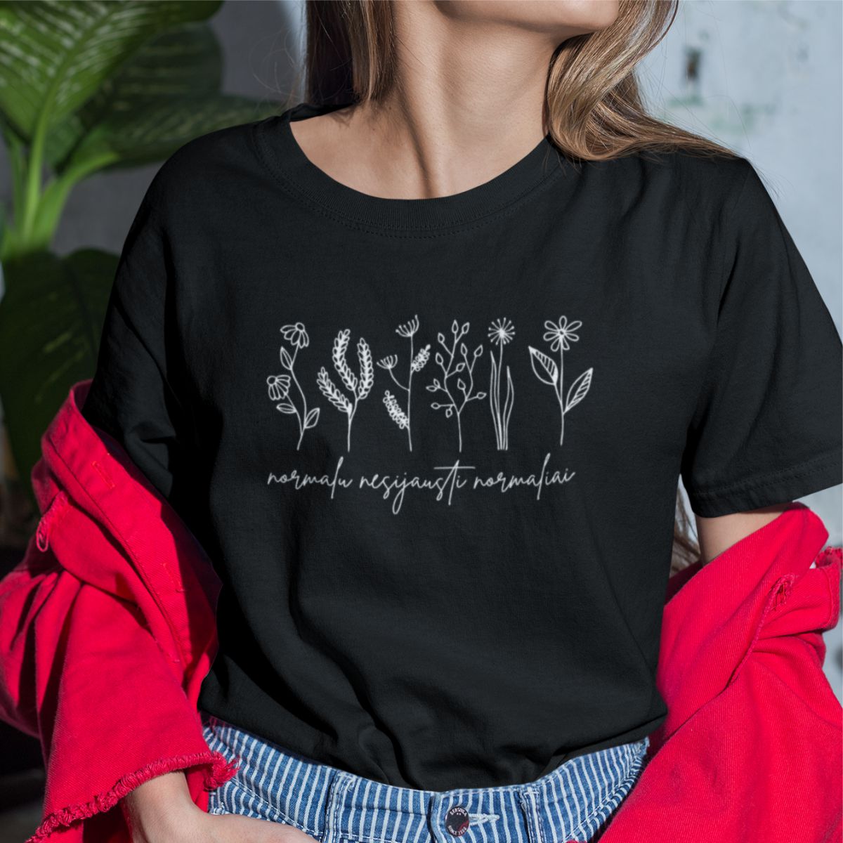Juodi medvilniniai marškinėliai "Normalu nesijausti normaliai"