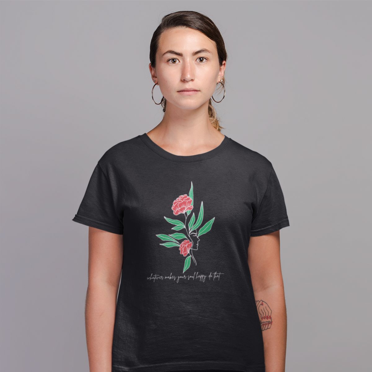 Juodi medvilniniai marškinėliai "Whatever makes you happy"