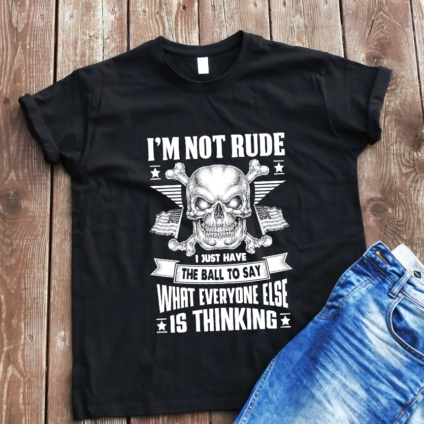Juodi marškinėliai "I'm not rude“