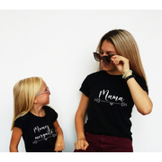 Medvilniniai marškinėliai su užrašais „Mama" mamytei ir „Mamos mergaitė“ mažylei. Pradžiuginkite savo artimiuosius šmaikšiomis, nusišypsoti skatinančiais marškinėliais!