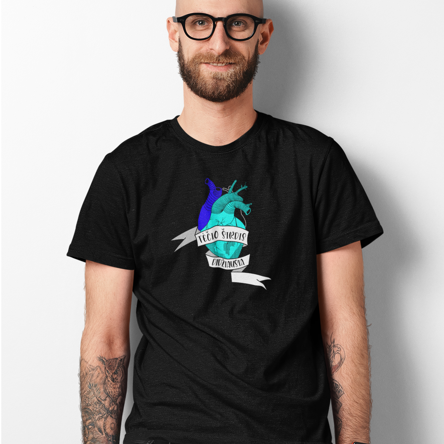 Juodi marškinėliai su užrašu "Tėčio širdis"