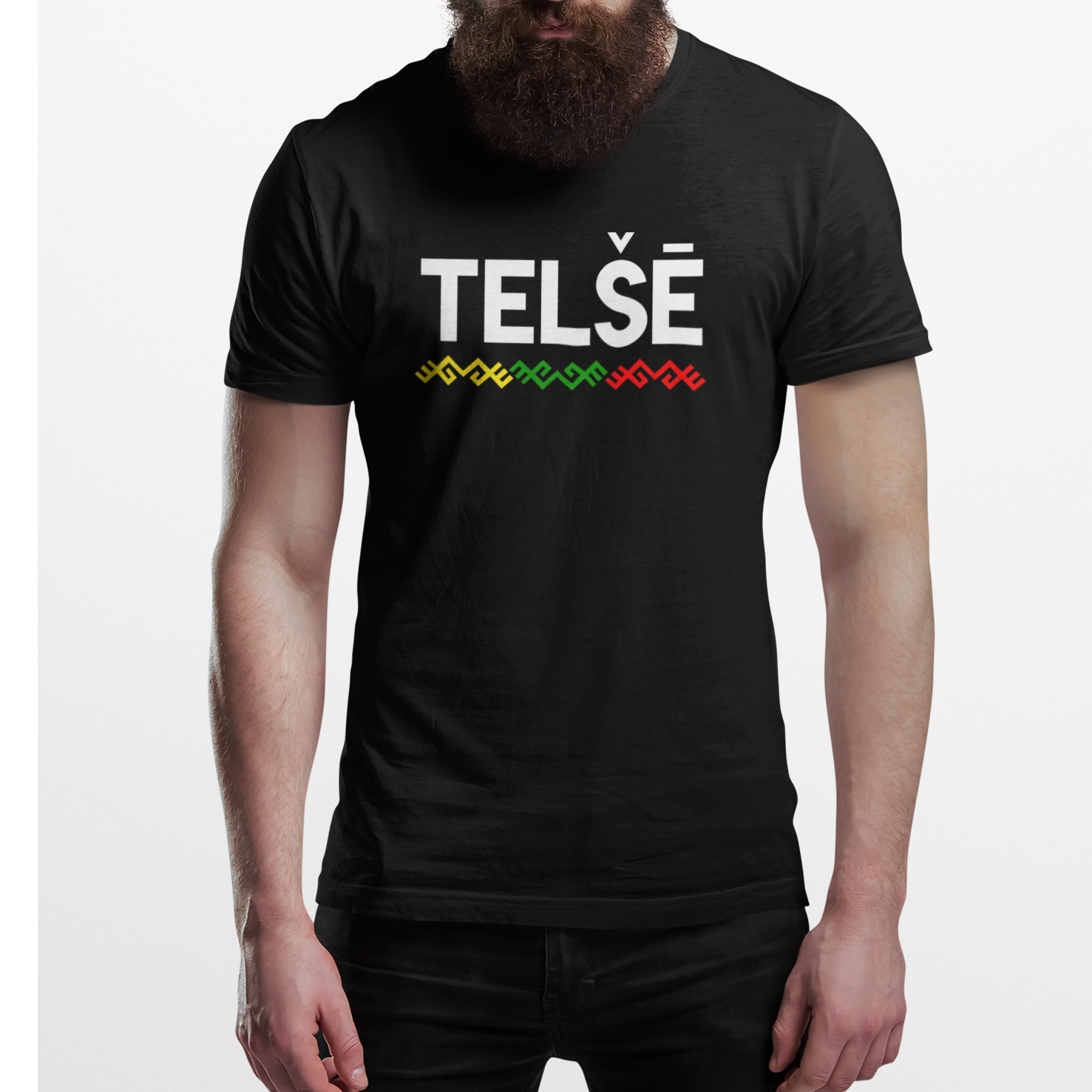 Juodi marškinėliai "Telše su tautiška juosta“