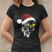 Juodi moteriški kalėdiniai marškinėliai "Kalėdinė kaukolė"