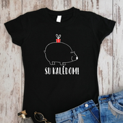 Juodi moteriški marškinėliai "Baltoji meška su dovana"