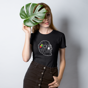 Juodi moteriški marškinėliai "Geometrinė kaukolė"