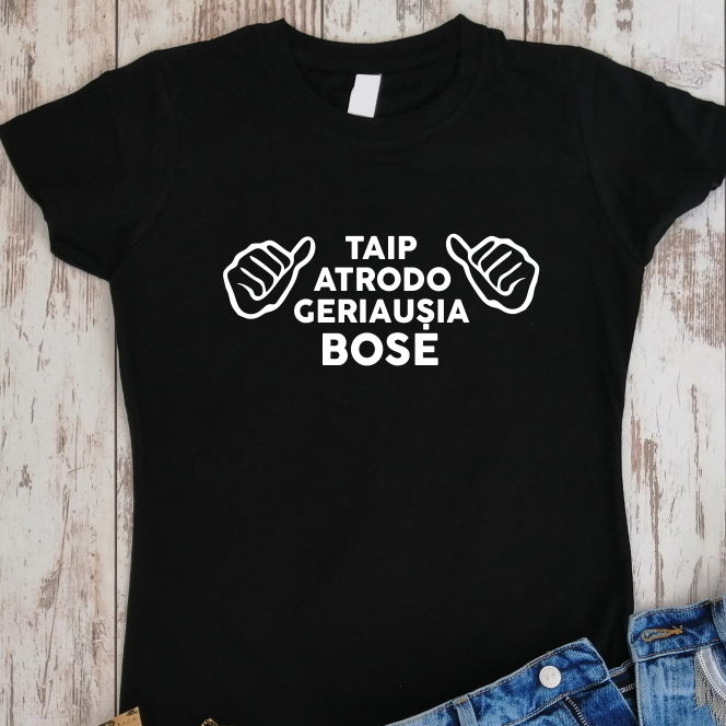 Juodi moteriški marškinėliai "Geriausia bosė"