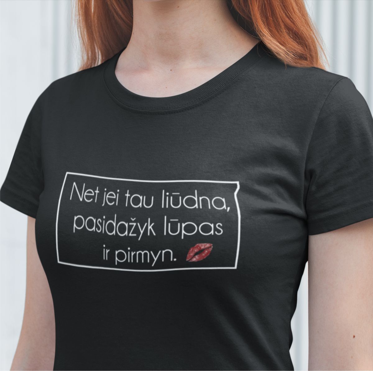 Juodi moteriški marškinėliai "Jei tau liūdna“