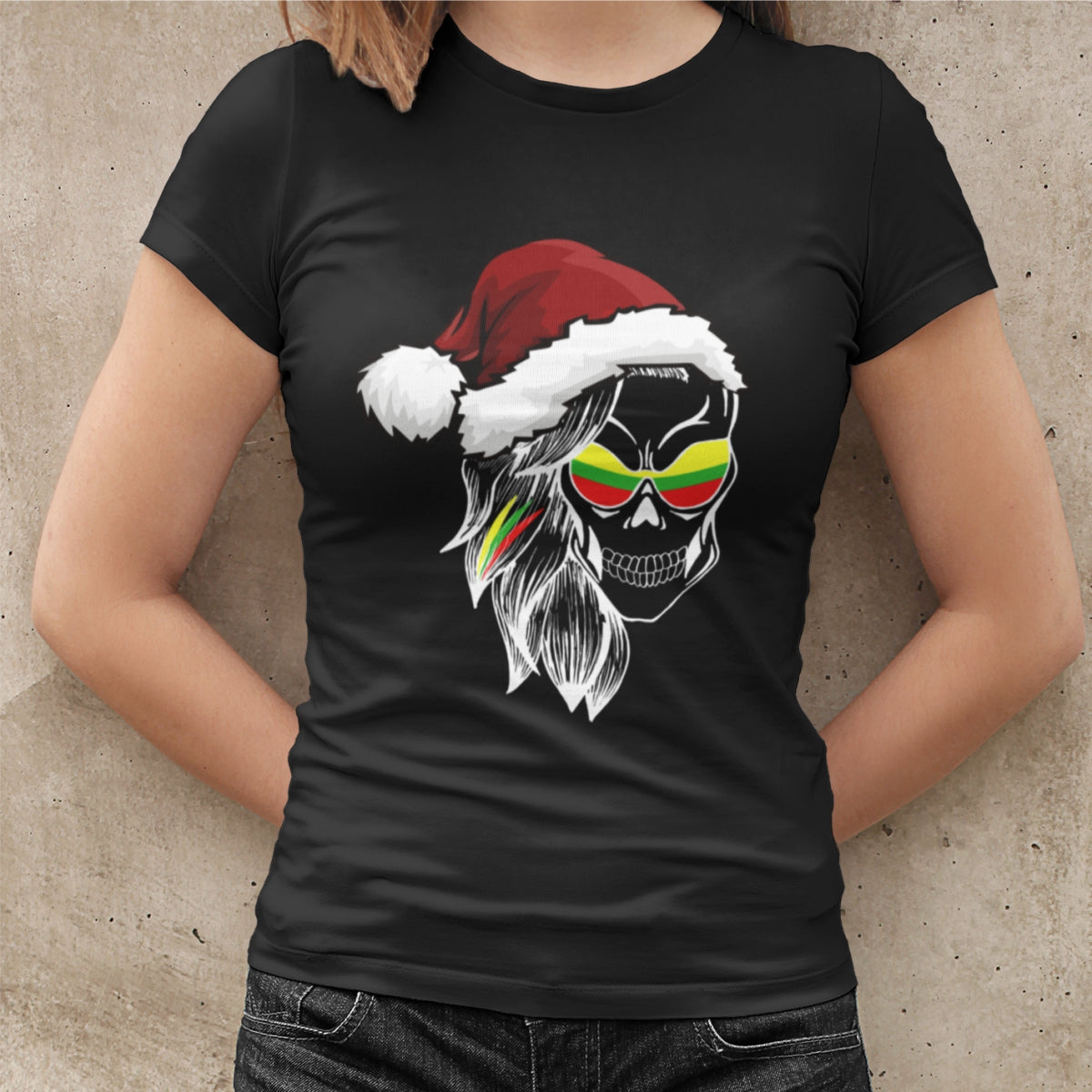 Juodi moteriški marškinėliai "Kalėdinė moteriška kaukolė"