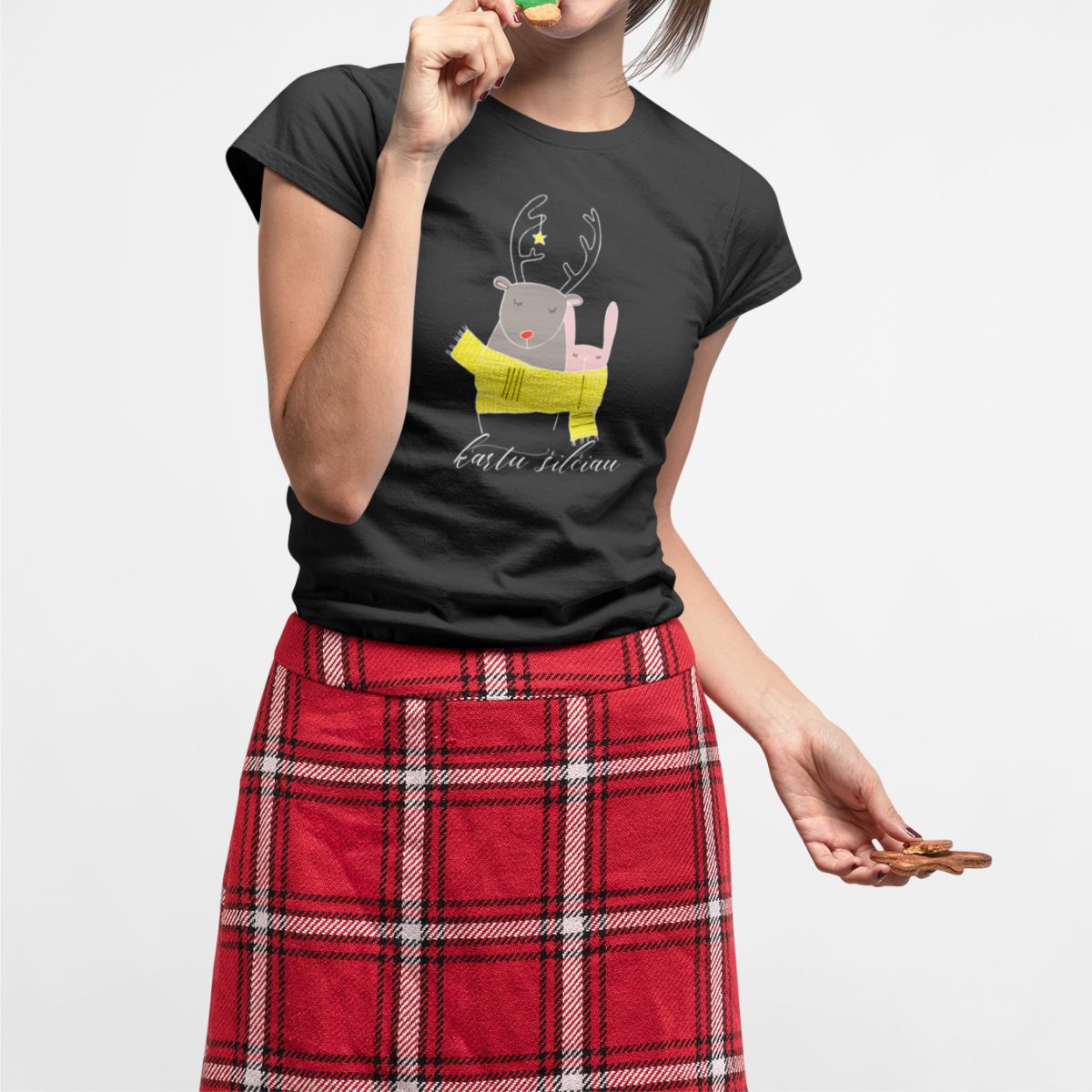 Juodi moteriški marškinėliai "Kartu šilčiau"
