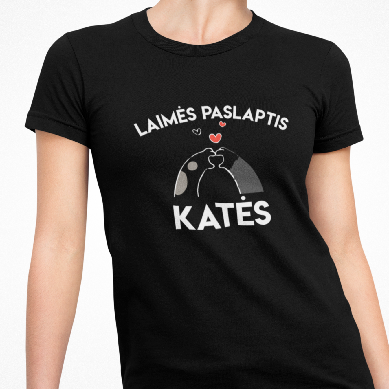 Juodi moteriški marškinėliai "Laimės paslaptis"