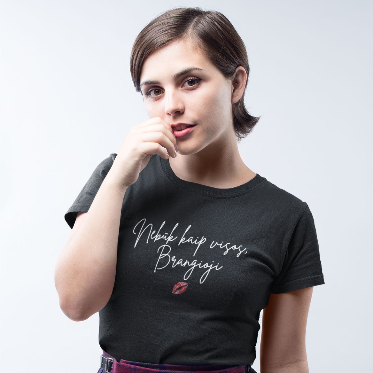 Juodi moteriški marškinėliai "Nebūk kaip visos“