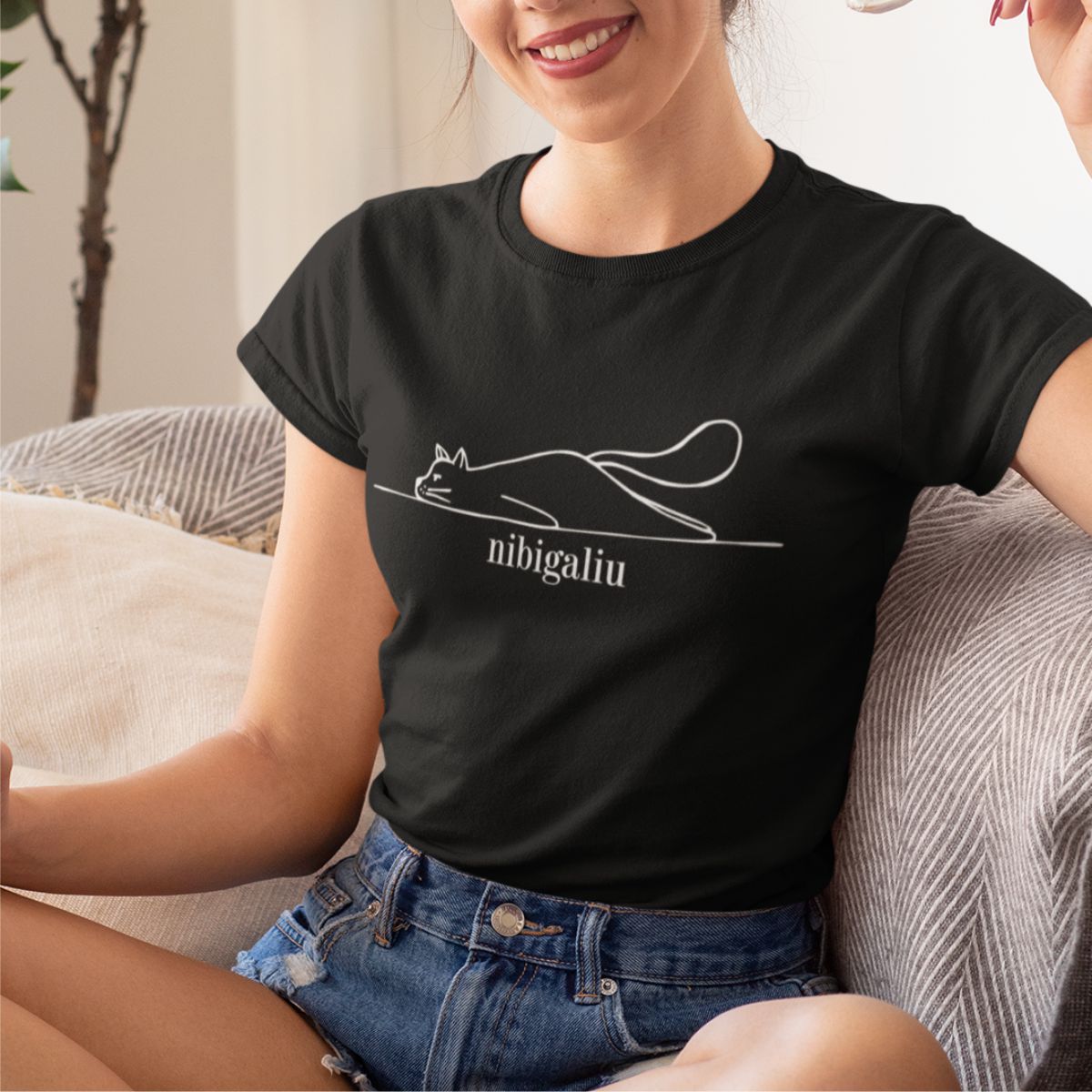 Juodi moteriški marškinėliai "Nibigaliu“ Pagaminta prekė (M dydis)