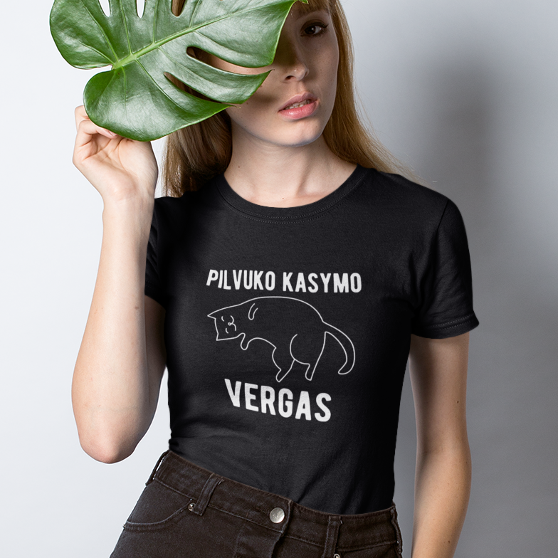 Juodi moteriški marškinėliai "Pilvuko kasymo vergas"